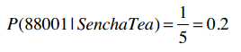 P(D|h)表示在一定条件下的观察结果。比如说购买过Sencha绿茶的人中邮编为88005的概率为: