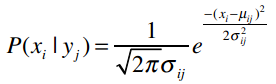 对于分类型的数据,我们用上面的方法来保存概率,而对连续性的数据,我们要使用概率密度函数,因此需要保存平均值和样本标准差。如: