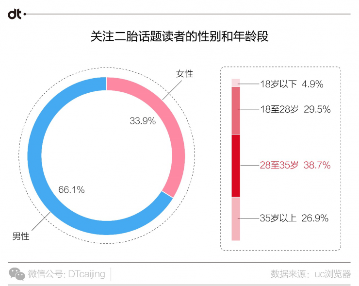 相应地,18岁-28岁的人群对二胎关注度只有29.5%,而这一年龄阶层在总体用户中占到58.5%。
