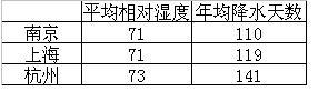 杭州>上海~南京 南京质疑:讲的是“多少楼台烟雨中”的感觉 宇文:平均相对湿度(%)和年降水天数如下: