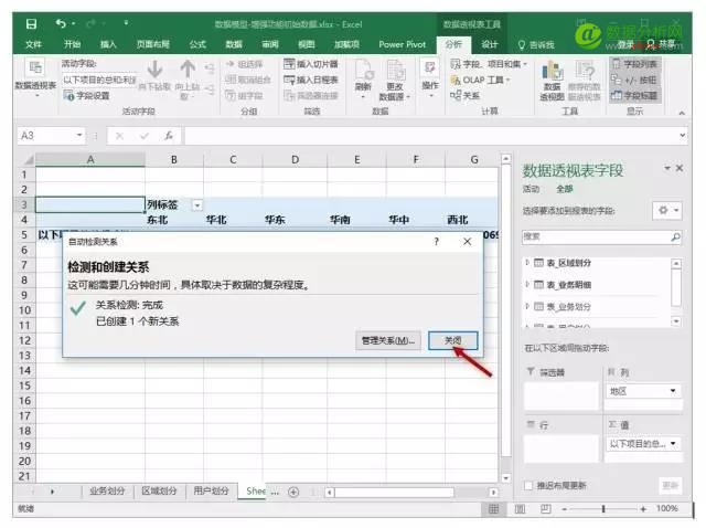 5.检测完成,单击“关闭”。也可以单击“管理关系”查看表之间的关系。