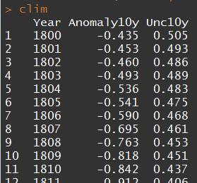 绘制方法是调用ggplot2的geom_ribbon函数,这个函数能画出一个"带"。我们可指定带的上下边界为置信区间,从而将折线图的置信域可视化出来。测试数据集中Unc10y表示 Anomaly10y 95%置信水平下的置信区间。