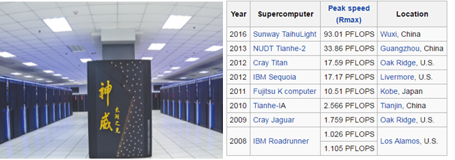 本文首先介绍了并行计算的基本概念,然后简要阐述了R和并行计算的关系。之后作者从R用户的使用角度讨论了隐式和显示两种并行计算模式,并给出了相应的案例。隐式并行计算模式不仅提供了简单清晰的使用方法,而且很好的隐藏了并行计算的实现细节。因此用户可以专注于问题本身。显示并行计算模式则更加灵活多样,用户可以按照自己的实际问题来选择数据分解,内存管理和计算任务分配的方式。最后,作者探讨了现阶段R并行化的挑战以及未来的发展。 R与并行计算 统计之都的小伙伴们对R,SAS,SPSS, MATLAB之类的统计软件的使用定是轻车熟路了,但是对并行计算(又名高性能计算,分布式计算)等概念可能多少会感到有点陌生。应太云兄之邀,在此给大家介绍一些关于并行计算的基本概念以及在R中的使用。 什么是并行计算? 并行计算,准确地说应该包括高性能计算机和并行软件两个方面。在很长一段时间里,中国的高性能计算机处于世界领先水平。在最近一期的世界TOP500超级计算机排名中,中国的神威太湖之光列居榜首。 但是高性能计算机的应用领域却比较有限,主要集中在军事,航天航空等国防军工以及科研领域。对于多数个人,中小型企业来说高性能计算机还是阳春白雪。 C" />C" />