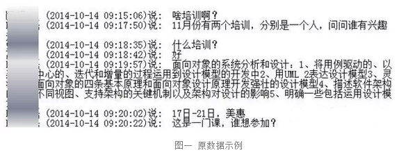 互联网时代,大量的新闻信息、网络交互、舆情信息以文本形式存储在数据库中,如何利用数据分析和文本挖掘的算法,将海量文本的价值挖掘出来,成为我们团队近期的一个研究方向,本案例就是我们的一个初步尝试。飞信群是我们在工作、生活中交流的重要平台,在将近一年的时间里共产生了几万条的聊天记录,展现了我们这个团队的方方面面。
