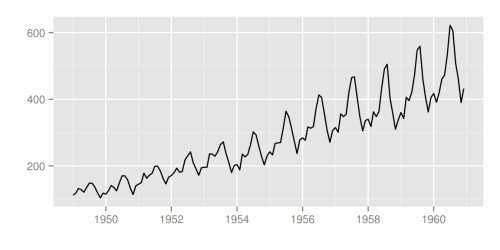 library(ggfortify) autoplot(AirPassengers)
