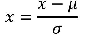 数据的标准化(normalization)是将数据按比例缩放,将其转化为无量纲的纯数值,便于不同单位或量级的指标能够进行比较。其中最典型的就是0-1标准化和Z标准化。在数据表中,用户贷款金额,年收入和等级是三个不同量级的数据。无法直接放在一起进行处理和分析。因此需要先进行标准化处理。 第一种标准化的方法是Z-score 标准化(zero-mean normalization) ,也叫标准差标准化,经过处理的数据符合均值为0,标准差为1的标准正态分布。下面是计算公式,其中μ为所有样本数据的均值,σ为所有样本数据的标准差。